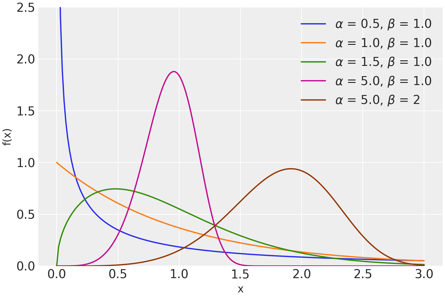 \[f(x \mid \alpha, \beta) = \frac{\alpha x^{\alpha - 1} \exp(-(\frac{x}{\beta})^{\alpha})}{\beta^\alpha}\](